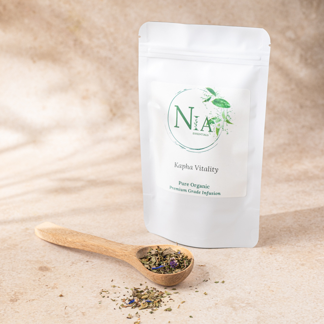 In Ayurveda, Kapha represents the grounding forces of earth and water, bringing stability, calm, and structure to body and mind. Kapha Vitality is crafted to gently balance these elements, using organic herbs and spices that invigorate without overstimulating. Warming fennel, cardamom, and chili boost circulation and digestion, while blackberry leaves and lemon balm provide gentle sweetness and calm energy. Coriander adds a fresh, aromatic note, and vibrant blue cornflower rounds out the blend. Perfect for moments when you need grounding with a touch of brightness.
