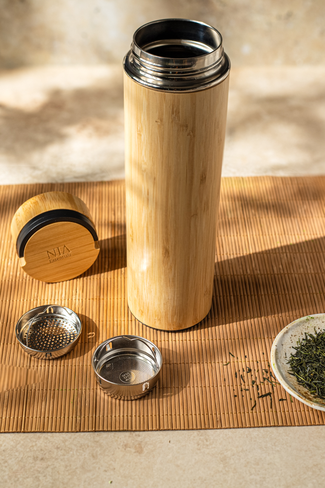 The Bamboo Essence Infuser Flask combines natural aesthetics with modern practicality. Its compact design makes it ideal for travel, commutes, or adding a touch of serenity to your desk. Whether you’re tackling a busy day or enjoying a quiet moment, this flask ensures your tea stays warm wherever you are.